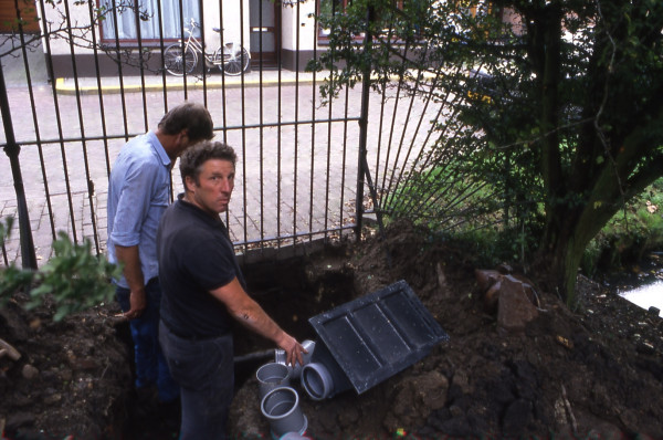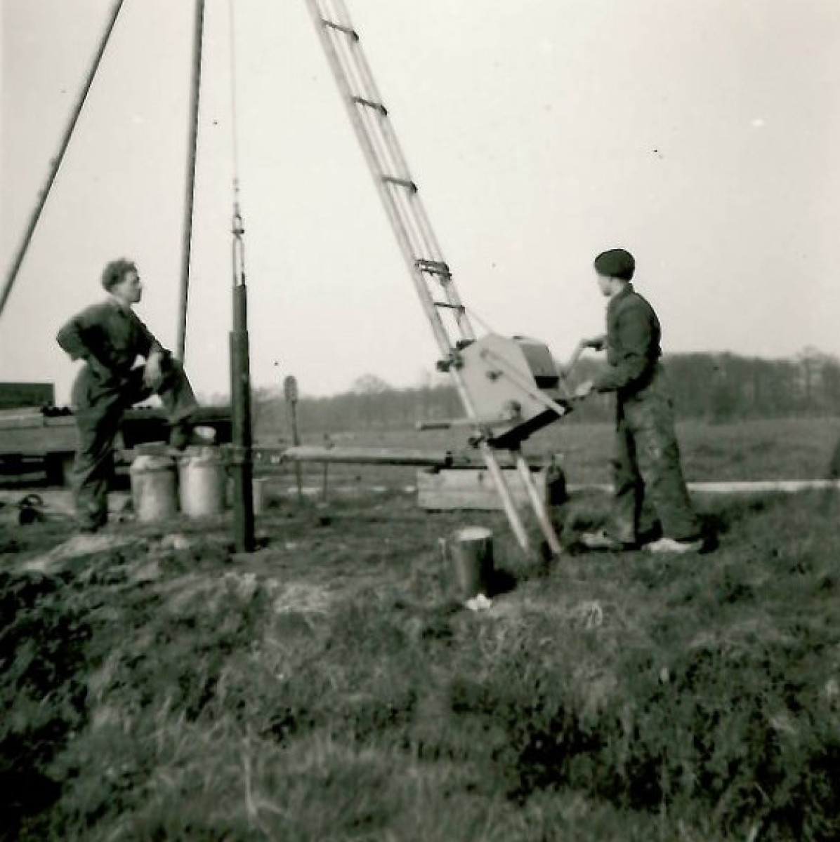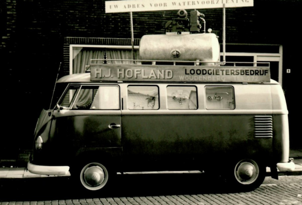 In de jaren ’50, toen Henk Hofland een jaar of 16 was, stond hij er alleen voor om de zaak over te nemen. Op de bakfiets (foto 1) of met de brommer stond Henk klaar voor allerlei loodgietersklussen. Hij sloeg ook Norton-putten voor drinkwater (foto 2). In deze jaren kwam de eerste Volkswagen bus van Henk Hofland die het werken makkelijker maakte (foto 3).