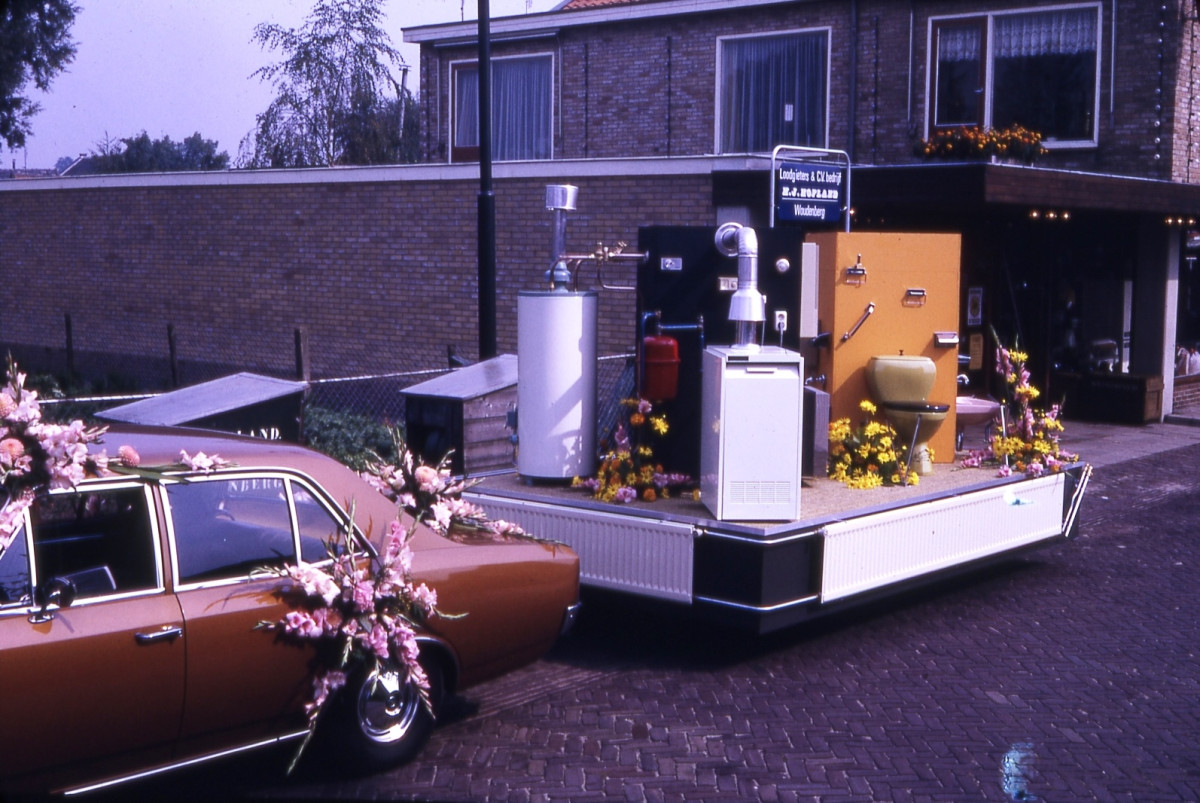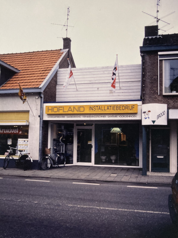 Hofland presenteerde zich in lokale optochten die in die tijd gehouden werden (foto 1). Henk Hofland was een erkende installateur voor het plaatsen en onderhouden van cv-installaties. Veel woningen waren inmiddels voorzien van (warm) stromend water uit de kraan, waardoor de vraag toenam naar het plaatsen van gekleurd sanitair. Toentertijd een erg luxe goed. Eind jaren ’70 werd achter de werkplaats een hal gebouwd als nieuwe werkplaats en op de 1e verdieping het kantoor.