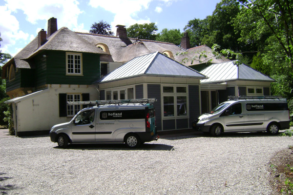 Rond 2008 is ervoor gekozen om met twee handelsnamen te gaan werken: Hofland Installaties voor het reguliere installatiewerk en Sanidrõme Hofland voor de badkamers. Dat bracht veel duidelijkheid. De bedrijfskleuren zijn net wat anders, maar beide bedrijven rijden in dezelfde auto’s met dezelfde (huis)stijl en dezelfde blauw/groene achterzijde.